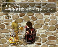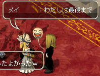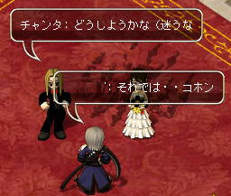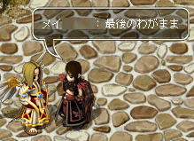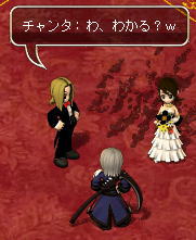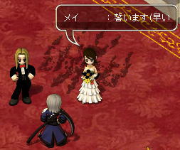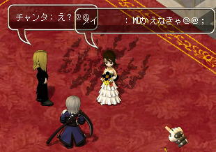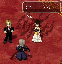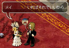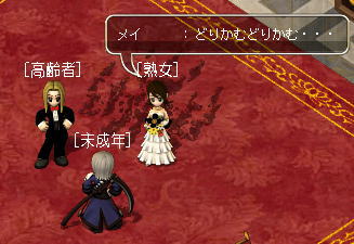【愛人メイちゃん引退】 畑代表のメイちゃんが引退。 最後のお別れの日、 人気(ひとけ)のないところへ誘われたおぢさま。 (。-_-。)。。oO(人気がないところ・・・ ![]() 背後は崖(がけ)そんな取り込み中に、 リアルで旦那さんの母上に話しかけられた( ▽|||)ぶほへ ( ▽|||)。。oO(お、俺は今それどころじゃないんだお母ちゃん! でも・・・、 ( ▽|||)。。oO(まさか母上も、嫁がネットで愛人と最後の別れをしているなんて ( ▽|||)。。oO(夢にも思うまい・・・・・・ ( ▽|||)。。oO(そんな嫁は嫌だ・・・・・・ まともにNチャ見てる余裕がなく、 おぢさま、しばし無言で棒立ち( ▽|||)すまぬ チャンタ:ごめん@@ チャンタ:今、母が話しかけてきて@@; それを聞いたメイちゃん 画面の向こう(こっち?)の母上に向かって ![]() ![]() 挨拶!? ( ゚Д゚) ![]() いや、待て。そういう問題ではない。 ![]() ![]() そんな事を画面に向かって、 言ってはいけない!Σ( ̄ロ ̄lll) ![]() アスを飛び出して人間関係が 築かれようとしている!?Σ( ̄ロ ̄lll) ばっちりさ! ( ゚Д゚;)そんな(?)メイちゃんの ![]() メイちゃん:結婚してくださいとは言いません ![]() チャンタ:女の子のわがままは大歓迎ですw メイちゃんの、最後のわがままは 今日の事を日記に載せる事(*’-’*) わがままって言う程でもないかわいらしいお願いでした♪(*’-’*) 「結婚してくださいとは言いません」と言ってくれたものの 結婚する気かΣ( ̄ロ ̄lll)自分で結婚をほのめかしておきながら、 動揺している動揺すると、キーボードの右の方(?)を押すクセがあると判明。 そして すかさず現れたメイちゃん聖に せ〜のっ!!で ←ずぶぬれ めげてないっ! ( ゚Д゚)メイちゃん聖が メイちゃん聖が ![]() それでも燃え続けたおぢさまの愛は ![]() メイちゃんをルアス裏通りの宿屋へ連れ込もうとしたおぢさまに 衝撃の事実が。 2人の髪の色は同じ この事実を、親子の法則(2004年11月発見)にあてはめると ![]() 父チャンタ 父チャンタ 父チャンタ 2人は親子?(*^ー^)人(^ー^*)うふふ ![]() 人間関係メチャメチャやil||li_| ̄|○ il||li 「母エルリム」をこれっぽっちも知らないのに 娘だと信じてる。(単純メイちゃん:事後報告で家系図が塗り変わるこの一家はやっぱりおもしろい 控えめに自己主張。それか ![]() 知らなければいいのか?Σ( ̄ロ ̄lll)![]() い、いかがわしい(/ω\;) どこまでいけるか(謎)は\(・д\)(/д・)/おいといて ε=(。・д・。)ふー メイちゃん:パパは私のこと認知してくれるのね? ![]() 【チャンタ】 年齢:91歳 身長:178cm 体重:60Kg 趣味:家庭菜園 得技:認知 ![]() ※訂正:妹(誤)→姉(正)サロンパス家の姉 ![]() チャンタ:そこにいる気が・・・ま、まぁ設定(?)は\(・д\)(/д・)/おいといて ε=(。・д・。)ふー 最後だし ![]() 挙げれるかな♪∈(*´┏エ┓`*)∋ ウェディングドレスを 質(?)に入れてしまって 持ってないというメイちゃんに ドレスを買うため、銀行へお金をおろしに走る。 ![]() 追いかけてくるメイちゃん。 ドレスは自分で買うと言う。 ![]() それでも、ここは男として(謎) ドレス位は買うぞ!!!と 銀行員に話しかけたら 貯金額が ![]() il||li_| ̄|○ il||li ![]() ↑ ドレス代どころか タキシード代ももらうil||li_| ̄|○ il||li は、はい(゜∇゜;)。。oO(注意つき?それどころか、引退ということで 色々アイテムも頂いたm(_ _)mありがとう ![]() 頭が上がらないil||li_| ̄|○ il||li 駄目だ。動揺している( ▽|||)とりあえず、もらったお金で ドレスを買いに行こうと思ったら、 弟が通りかかった。![]() そして、兄が色々、貢いでもらった事を知り、 ![]() 兄の気持ちを腹話術で代弁?( ▽|||) 高齢者問題?( ▽|||)メイちゃん: 新番組『メイのずばり言うわよ』ぽこ、兄の貯金額にやや動揺。 ![]() ![]() お金の使い道は忘れましたil||li_| ̄|○ il||li(もともと、そんなに貯金してなかったし とりあえずイカルス経由でルアス王宮へ イカルス ![]() 焦って、リュシオ(左の人)に話しかけるΣ( ̄ロ ̄lll)あぶねー ![]() ![]() 慌てて、キャンセル( ▽|||)←Kちゃんと別れる気はないらしい メイちゃんには黒似合うかなと思って黒ドレスと黒タキシードを購入∈(*´┏エ┓`*)∋ 正規の結婚式ではないので 正面入り口から、普通に王宮に入る。 ![]() うん。やはり黒で正解∈(*´┏エ┓`*)∋にあっとる![]() おぢさま、 91歳にして、2人目(2度目ではない)の妻をめとる。 結婚式場に入場したら、 3人とも別々の部屋(?)に飛ばされたので 違う部屋に移動(゚∇゚〃 ![]() ぽこ に神父をやってもらおうと頼んだが ぽこ賊:ム、ムリ><; ムリ?Σ( ̄ロ ̄lll) ムリな理由とは!? さすが(?)若者!Σ( ̄ロ ̄lll) (リアルで)結婚式に出たことがないらしく 神父が何言うのかわかんない ときたもんだ!Σ( ̄ロ ̄lll) メイちゃん:みようみまねで・・・ がんばれ、ぽこ(笑 ・・・。 Σ( ̄ロ ̄lll)![]() ↑ 弟に神父を頼んでおきながら勝手に式を進める新郎新婦と 気にせず、仕切りなおす弟。 あ!? ( ゚Д゚)![]() はい、どうぞ!Σ( ̄ロ ̄lll) ・・・φ(..)カキカキメイちゃん:未来予想図2 ※未来予想図2・・・結構昔のドリカムの名曲 ![]() 