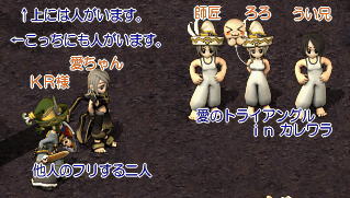 ナマモノとチュウ。 ![]() 向かい合うと、顔べろべろ舐められてるみたいで 気分はムツゴロウです(///∇///) さて、、、 最近、寒さも幾分ましになってきたせいか 裸になる頻度が微妙に増えてます(>_<) ![]() 普通に火山1で狩りしてたはずが、、、、 ![]() ![]() 注:いつもこんな事してる師匠ではありません(; ̄ー ̄A アセアセ・・ ノリがいいので皆次々とつられて脱いでゆく。。。 ![]() ![]() M様:変態PTとも言いますね〜ボソッ ![]() 私、脱いだの最後だったのに何故リーダー!???( ▽|||) 皆から、はぐれると恥ずかしいよ!!! とお互い声を掛け合い、はぐれぬように狩りをするが 団体でも十分恥ずかしい!( ▽|||) 服を着た人々とすれ違う(///∇///)M様:ギルド名かくしておこうw 名案です!!(゚∇゚〃 と言った直後に、すれ違った修さんに メモられる_| ̄|○ 普通、タゲってこっちに向かってくるであろう距離にいたモンスが 少しこっちに向かってきたかなと思った次の瞬間、反転して逃げ出す。 ![]() モンスなりにこの異様な光景に恐怖を覚えたに違いないε- (´ー`*) そんな幸せ変態狩りの最中、t2&dc湧きで聖さんがお亡くなりに( ▽|||) ![]() おまけ 初めてアス内で、int聖のびさんと出会う(゚∇゚〃 この方が、ビジュアのダメージ(以前の日記参照)について いろいろホムペに考察を書かれてたご本人様です(゚∇゚〃 これからMC3に行くとのこと。びじゅあ、びじゅあ〜♪ |